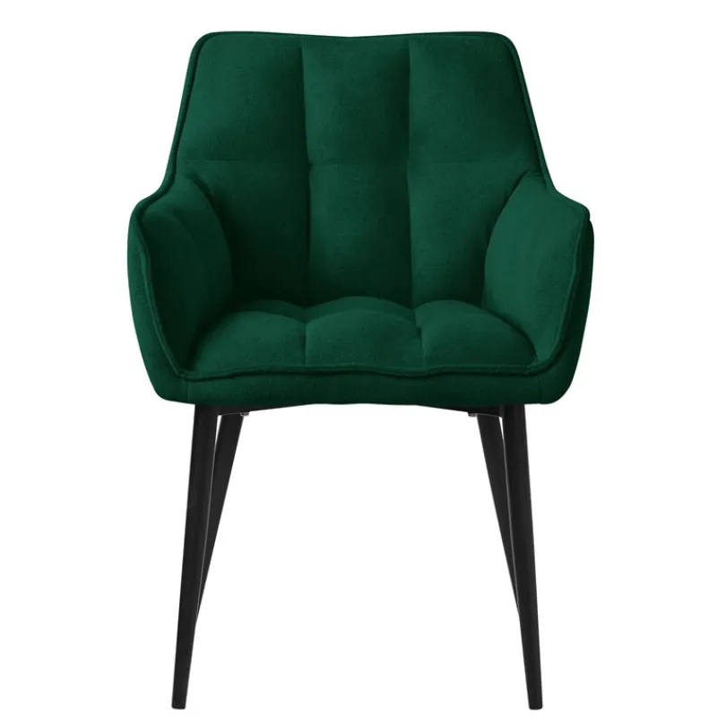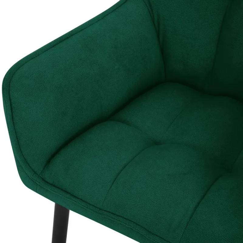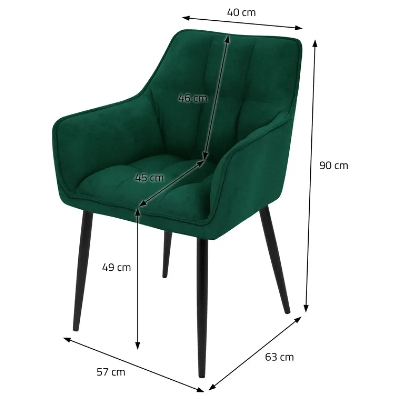 Die Sitzfläche misst bequeme 45 cm in der Tiefe und 49 cm in der Sitzhöhe, während die hohe Rückenlehne von 46 cm zusätzliche Unterstützung für deinen Rücken bietet. Der Esszimmerstuhl ist mit einer hochwertigen Polsterung versehen und verfügt über einen strapazierfähigen Bezug, der für langanhaltende Bequemlichkeit sorgt. Die stabilen, schwarzen Metallbeine garantieren eine hervorragende Standfestigkeit und runden das moderne Design ab.