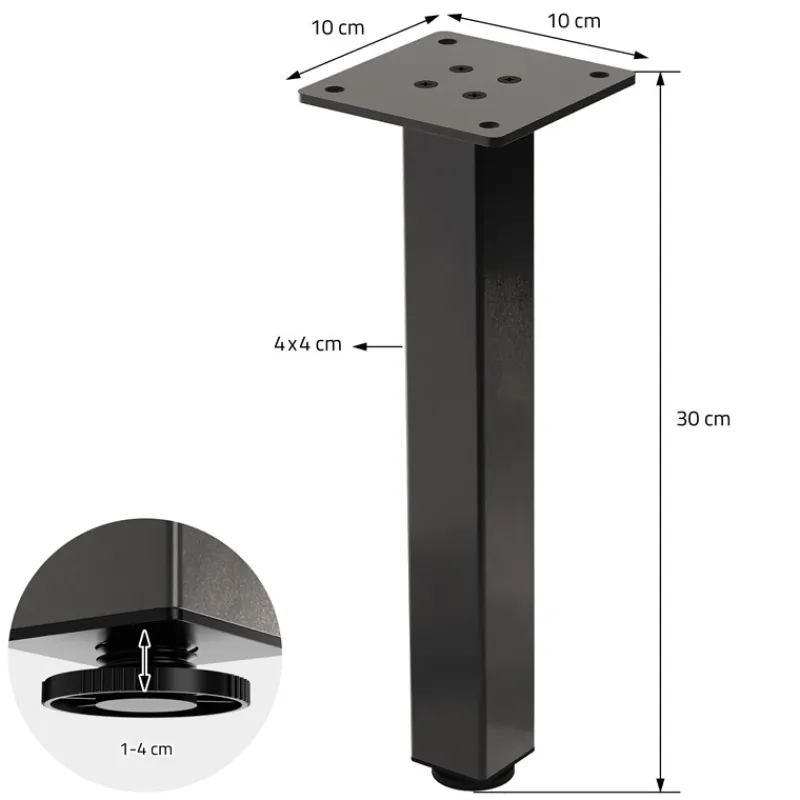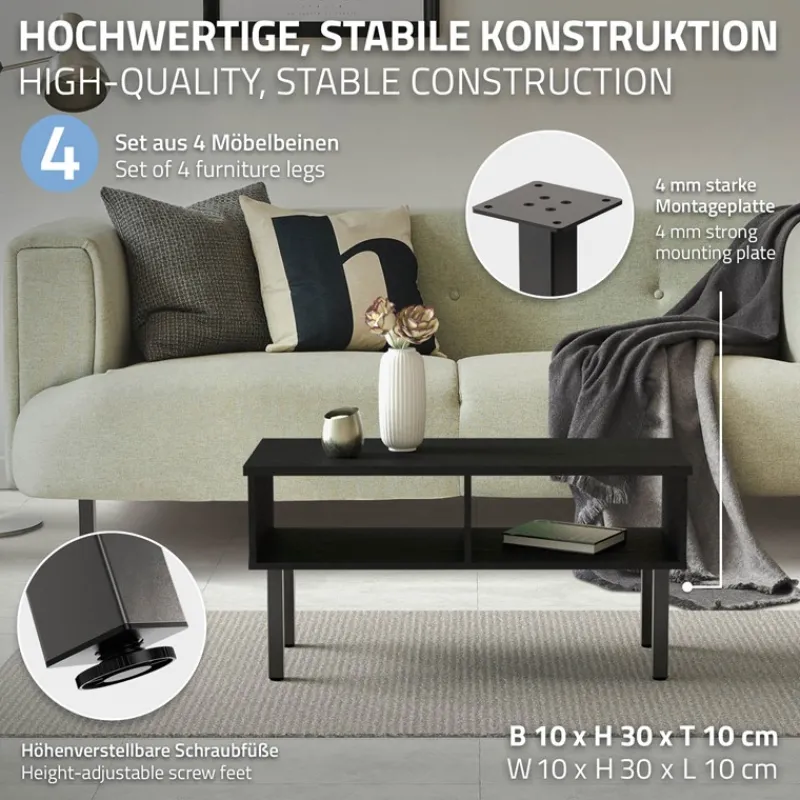 Diese Tischbeine im minimalistischen I-Design bieten eine stabile und moderne Lösung für verschiedenste DIY-Tischprojekte. Mit einer Höhe von 30 cm eignen sie sich ideal für Couchtische, Bänke oder niedrige Sideboards. Gefertigt aus robustem Stahl, überzeugen sie durch Langlebigkeit und ein zeitloses Design. Die höhenverstellbaren Schraubfüße sorgen für einen sicheren Stand – auch auf unebenen Böden. Dank der 4 mm starken Montageplatte lassen sich die Beine unkompliziert und sicher unter jede Tischplatte schrauben.