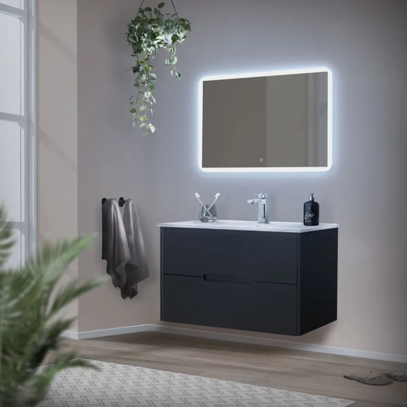 Moderner Badezimmerspiegel mit integriertem LED-Licht und Touch-Bedienung: Eleganz und Funktionalität vereint