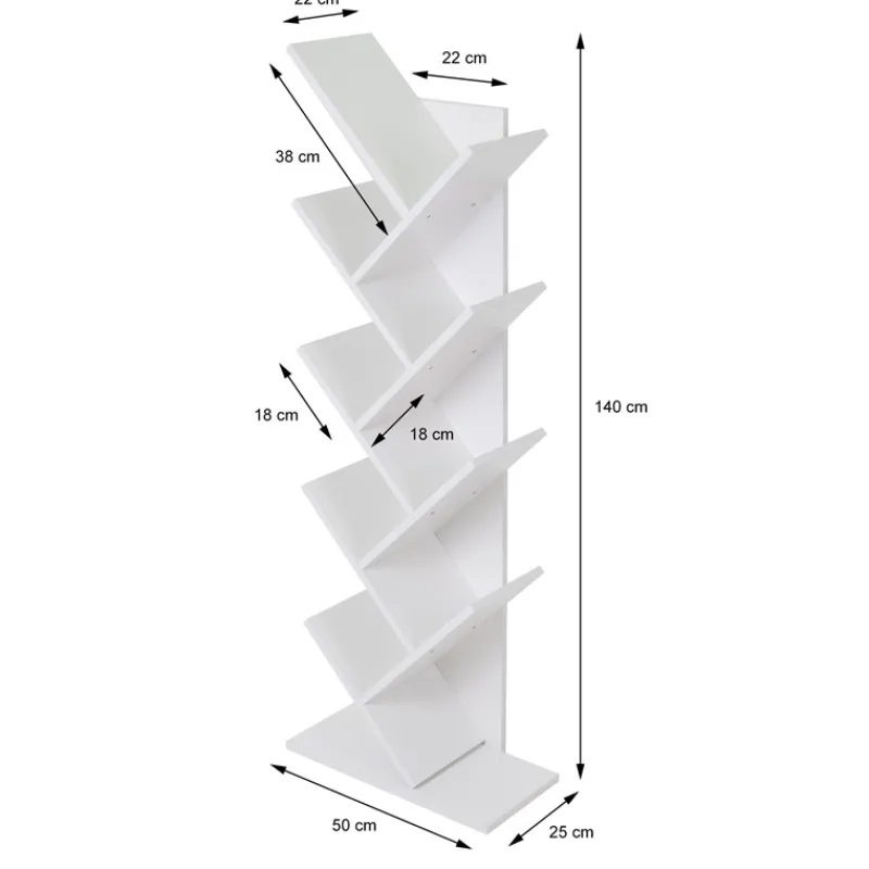 Das moderne Bücherregal von ML-Design® hat neun Ebenen die in zweigenartiger Form angeordnet sind. Setze deine Lieblingsbücher oder Accessoires in Szene. Das schlichte Weiß passt sich hervorragend in allen Räumen an und harmoniert perfekt mit deiner bestehenden Inneneinrichtung. Durch das hochwertige Material ist das Regal äußerst robust und kratzfest. Die hochwertige Verarbeitung sorgt für eine lange Lebensdauer. Durch die zweigenartige-Form ist das Regal sehr platzeffizient und sorgt für eine gute Ordnung auf kleiner Fläche.