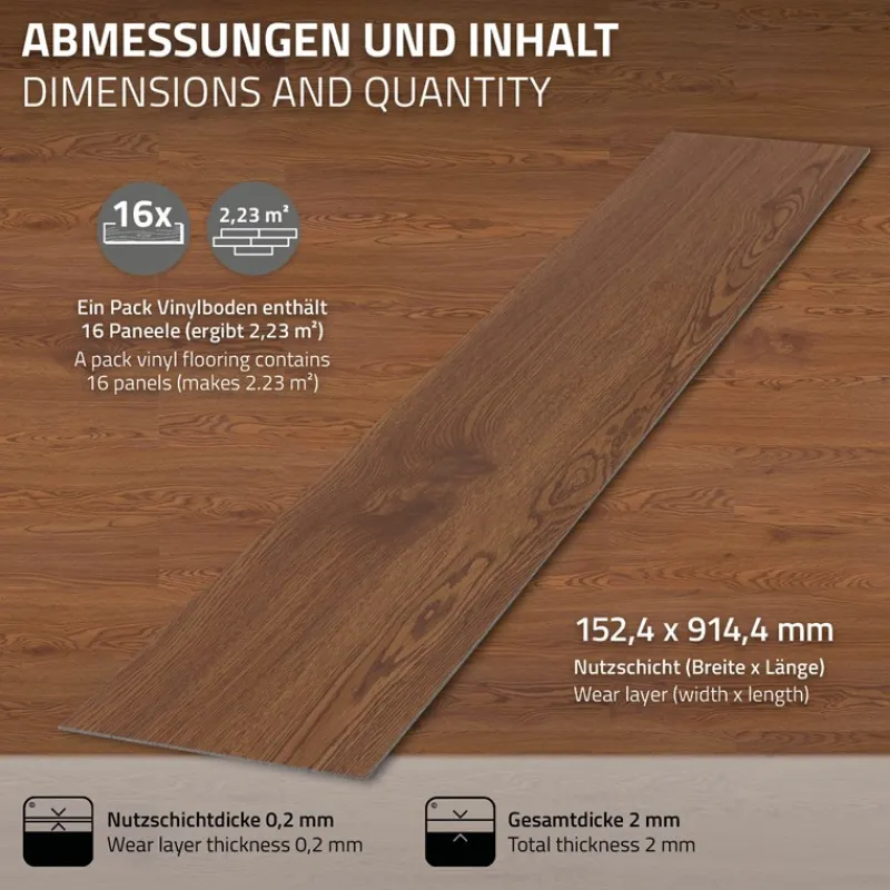 3. 16 Stück pro Paket: Jedes Paket enthält 16 Planken, was ausreichend ist, um eine Fläche von 2,23 m² zu bedecken. Perfekt für Projekte jeder Größe – von kleinen Renovierungen bis hin zu größeren Wohnbereichen.