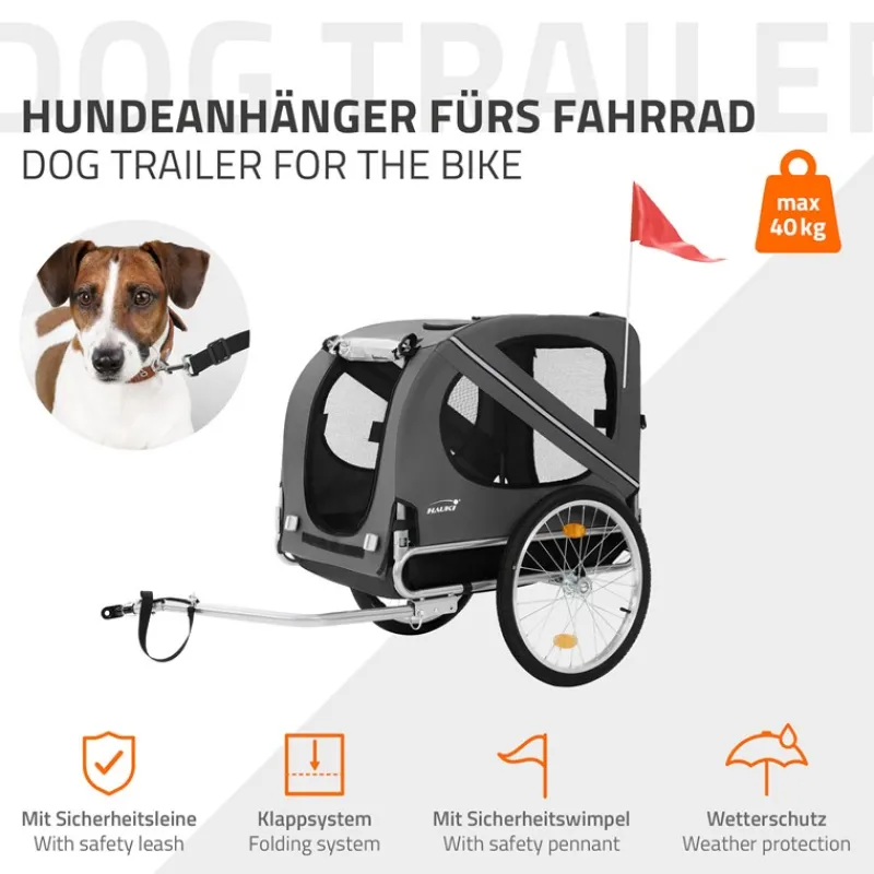 Für kleine bis mittelgroße Hunde: Der Anhänger eignet sich perfekt für Hunde bis zu einem Gewicht von 40 kg (dynamisch) bzw. 60 kg (statisch).