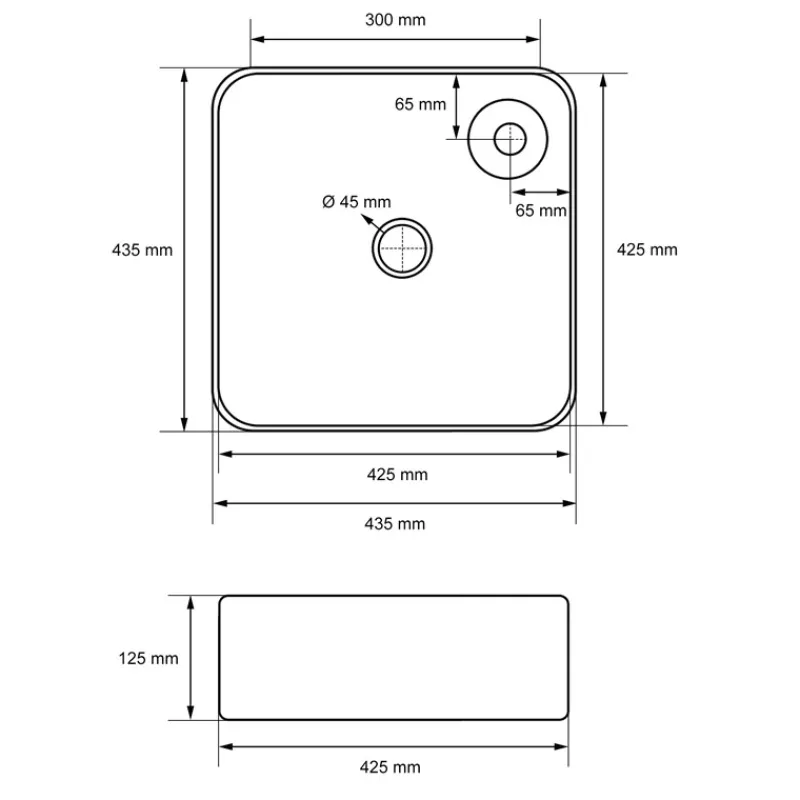Maße (BxTxH): ca. 435 x 435 x 125 mm