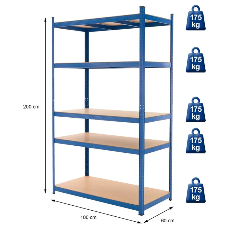 175 kg Tragkraft pro Regalboden bei gleichmäßiger Lastverteilung – 875 kg pro Regal
