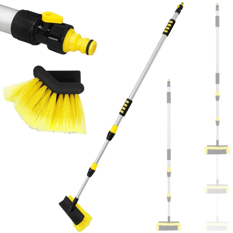 So muss eine professionelle Waschbürste aussehen. Diese Bürste mit eine Teleskopstange von 130 bis 300 cm und Wasserzufuhr ist das perfekte Werkzeug um das Auto mühelos zu säubern. Dank einem Strömungswächter und An/Aus-Schalter, können Sie auch den Wasserverbrauch komplett kontrollieren.