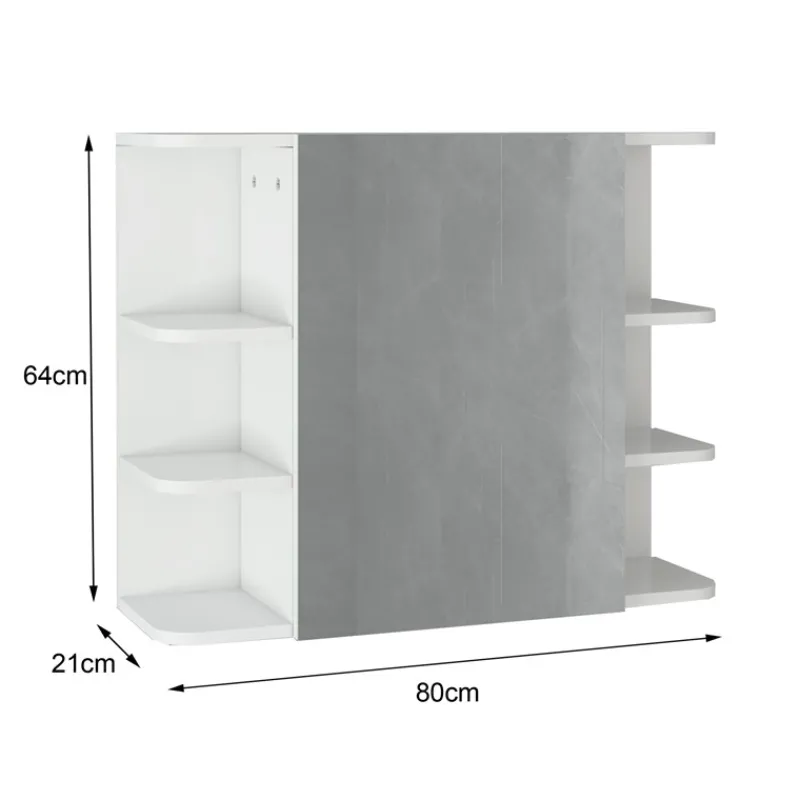 Verleih deinem Badezimmer mit diesem Spiegelschrankschrank eine stilvolle Optik und ein modernes Ambiente! Der Schrank bietet viel Stauraum. Der Badezimmerschrank hat eine robuste Konstruktion und bietet dank seinen zwei außenstehenden Regalen und dem Stauraum hinter dem Spiegel verschiedene Verwendungsmöglichkeiten.