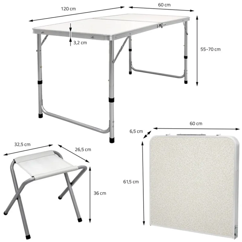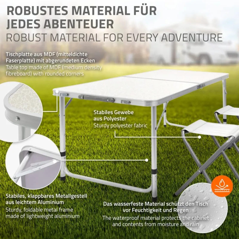- Platzeffiziente Campingtisch mit 4 Hockern