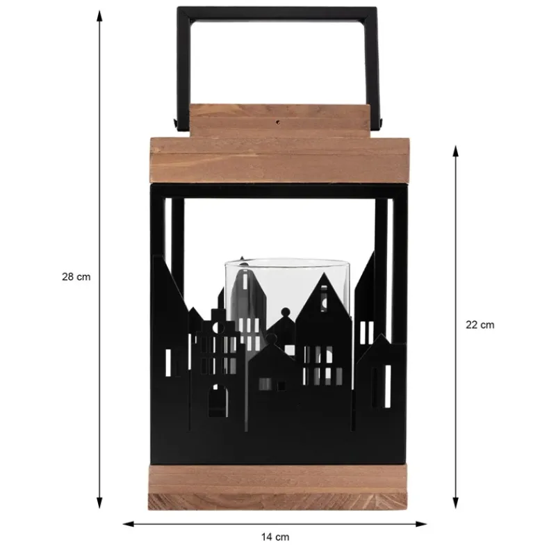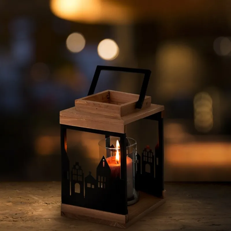 Eine schöne Holzlaterne verschönert deinen Hauseingang oder auch dein Wohnzimmer um einiges. Die Kombination aus Holz und Metall hebt diese Laterne von den üblichen Produkten ab. Platziert werden können Teelichter oder auch ganze Kerzen. Diese find in dem Glaszylinder Platz. Der Leuchteffekt ist besonders schön – aus Metall wurde hier eine Skyline einer Stadt gestanzt und so wirkt es als ob die Stadt mit ihren verschiedenen Lichtern leuchten würde. Die Laterne ist nicht nur für Weihnachten geeignet, sondern kann das ganze Jahr über deinen Lieblingsort ausleuchten.