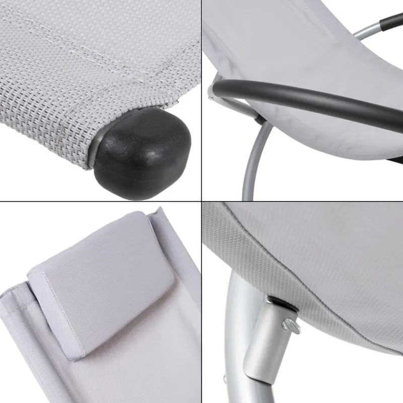 Für noch mehr Bequemlichkeit beim Liegen sorgt das Kopfkissen, das per Klettverschluss an der richtigen Stelle bleibt. Die komfortable und strapazierfähige Textil-Bespannung, der Aluminium-Rahmen und die rutschfeste PU-Ummantelung sind besonders UV- und wetterbeständig, wasserabweisend und garantieren einen langen Gebrauch im Außenbereich. Nach dem Entspannen können Sie die Schaukelliege ganz einfach einklappen und platzsparend aufbewahren.
