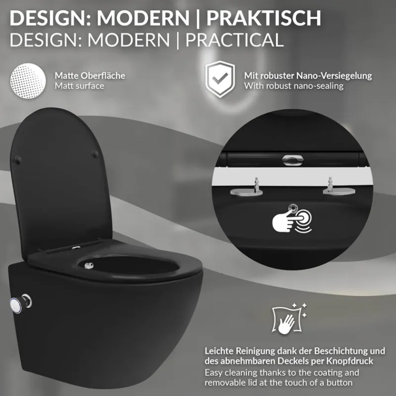 Bidet-Funktion: Das eingebaute Bidet hebt die Toilette auf ein höheres Level von Komfort und Luxus.