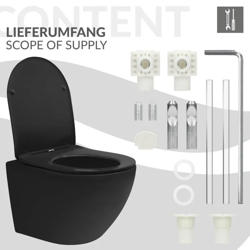 Das Montage-Set ist selbstverständlich genauso im Lieferumfang wie der WC-Sitz, dieser besitzt einen Softclose-Mechanismus und ist zudem abnehmbar.